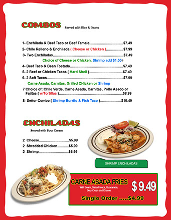 The dishes that most identify us are our range of "Burritos", "Green Chile", " Carnitas", and "Shrimp". In addition, I want to stress that for the preparation of our dishes we use the best products on the market and maintain the same standards of quality in all of our stores.